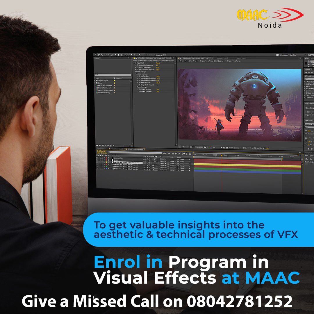 Program in Visual Effects at MAAC is a highly professional course that trains you in latest visual effects software and techniques. With the constant guidance and support of industry experts, you will gain exceptional knowledge in the fundamentals of digital designs, layer-based compositing, clean plate & wire removal, match moving and camera tracking. Training in the latest software like Mocha, Fusion, RealFlow, PFTrack, Nuke, Photoshop and After Effects will help you to secure high-end positions like Motions Graphic Artist and Video Editor. #learnmotiongraphics #careersinanimation #interiordesigninstitute #autocadcourse #autocadcourseinnoida #motiongraphice #MAAC #animation #webdesigncourse #gamedesigncourses #videoeditingcourse #solidworkscourse #maacanimationnoidasector62 #GraphicDesignCourse #AnimationCourse #WebdesignCourse #CareerCourse #FilmmakingCourse #GraphicDesignCourse #WebDesignCourse #VFXCourse #Animationcourse #GraphicDesignCourse Give us miss call: 08042781252